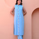 Saira Printed Matching Set seamlessly blends style and comfort with its plush cotton fabric and handblock printed design. The relaxed-fit straight kurta features a chic spread collar with buttons down the front placket, complemented by full sleeves adorned with contrasting panel details and cuffs. Paired with trendy zig-zag printed pants,...