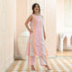 Introducing our Bandhej Cape With Top & Pants a mesmerising symphony of lavender, green, and beige hues that's here to turn your style into a dreamy canvas of elegance! The pastel shades blend like a soft sunrise, while the Bandhej pattern adds a touch of whimsy. With bell sleeves that dance and a fun front tie design, this outfit screams playful elegance.
